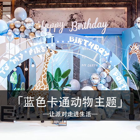 「欢乐动物王国」马卡龙蓝卡通男宝宝周岁...
